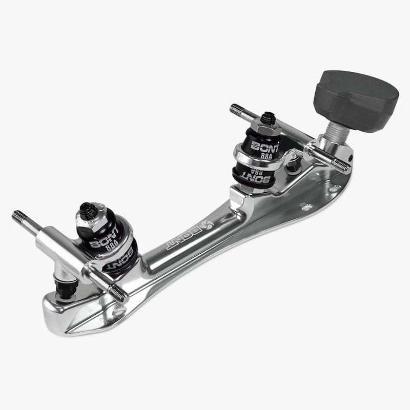 The Bont Athena roller derby plate is our take on the classic quad plate. Bont designed the plate with smooth, elegant lines that will last the test of time. The chassis is crafted from extruded 6061 aircraft aluminum. The plate is made to extremely tight tolerances and has a low profile which means that the wheels are closer to the boot than most other plates. This lowers your center of gravity and improves edging. The 20-degree kingpin angle is great for making tight turns as well as top-end speed. A variable adjustment nut and grub screw allow you to skate your plate tight or loose to suit your style. The plate features Delrin pivot cups and premium ultra-high rebounding urethane cushions that are made in the USA.