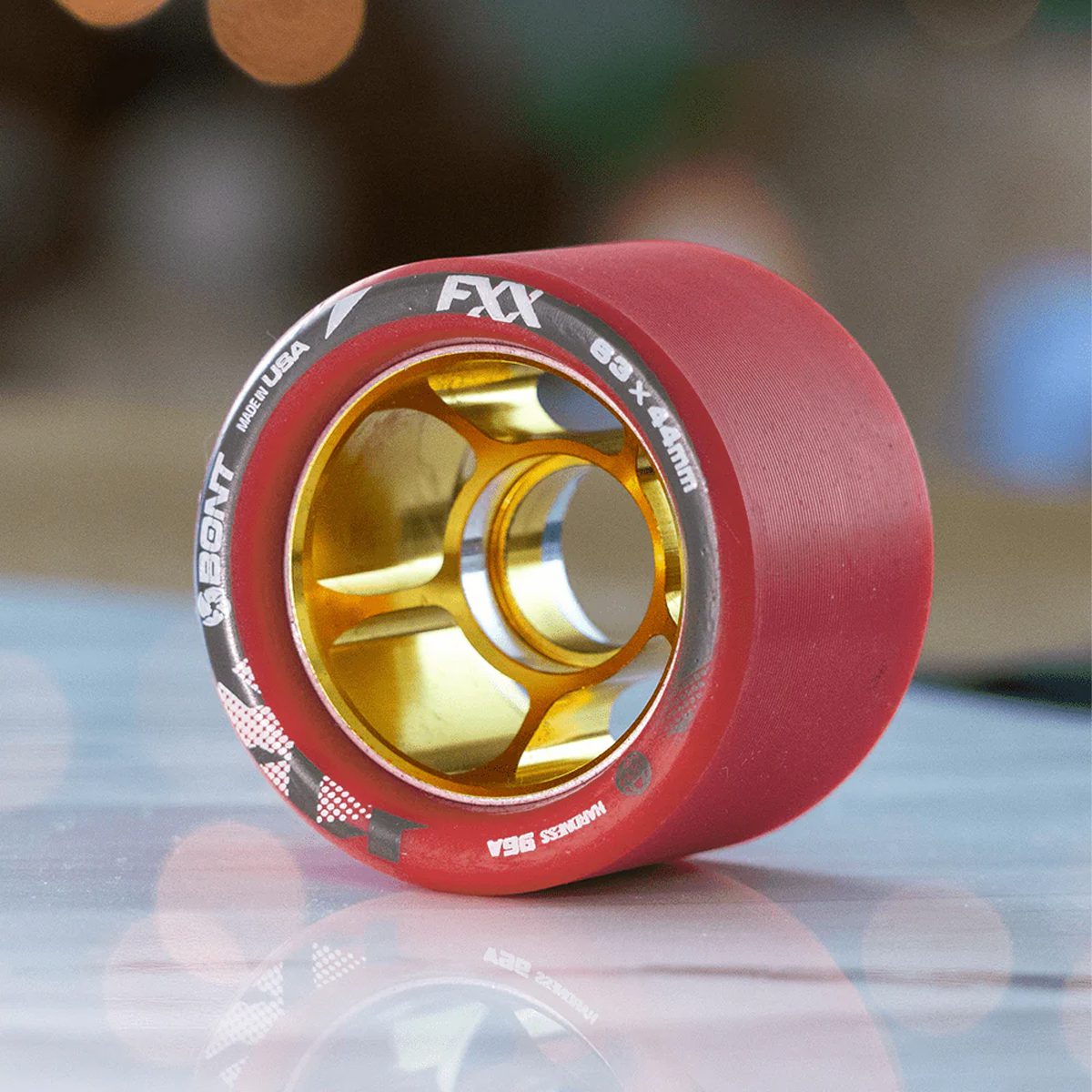 Introducing the highly acclaimed Bont FXX roller skate wheels, now available in exclusive limited edition runs featuring various sizes, hardness levels, and vibrant colors. Act fast to secure your order – each release is one of a kind, and we may not offer the same wheel twice.