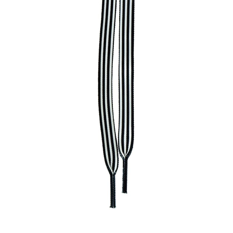 The Official – Features a 5-stripe black and white pattern that runs the length of the lace. A great complement to official jerseys worn by roller rink skate guards and roller derby officials.