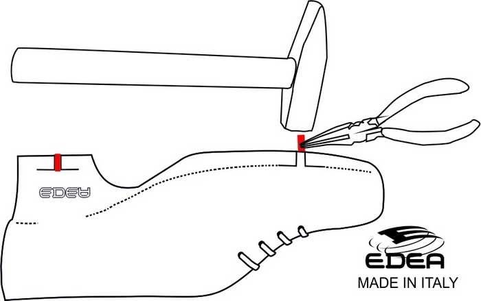 The Edea carbon filler are very useful for plugging the existing holes on the sole of the boot when changing the blade with a different model that requires a different size of screw. The edea carbon filler diameter corresponds to that of the drill tip (mm 2.5) and they are the same thickness as the insole/sole (mm 12) To insert the Edea carbon filler, use a set of pliers to hold the bar in place, and tap it into the hole, applying pressure with a hammer. The consistency of the material allows further drilling next to the bar and on top of it.