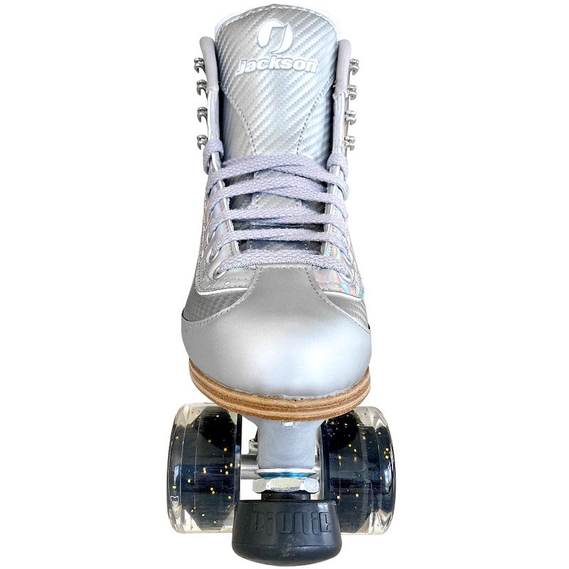 Jackson Vibe Silver Nylon Outdoor Skate Package with Pulse Lite Wheels:The Jackson skate company has been a global leader in the figure skating industry for the past 25 years.