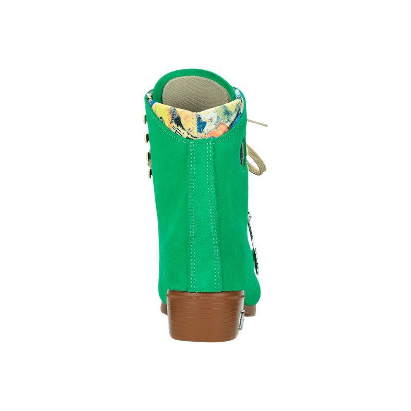 The Moxi Lolly Green Apple Boot is colorful & comfortable, with suede leather boots, there is little to no break-in time. The suede leather boot molds toyour foot.