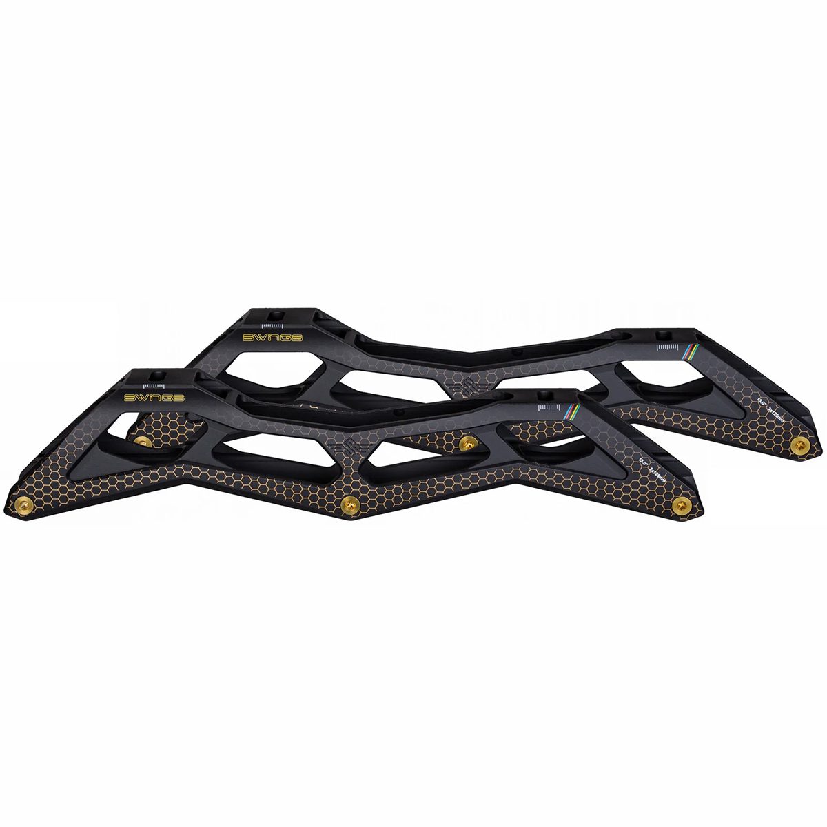The MG Frame frame collection is one of the most recognized and successful inline race frame. With a length of 13.0 inches / 330mm and designed to roll on 3x125mm wheels, the frame is the ideal for racing, and for skaters looking for unmatched inline racing performance. This superb Triskate frame is made of light and durable magnesium machined to perfection. The frame weights only 161 grams due to the magnesium used. Designed to deliver efficient power transfer with every stride, the MG Frame 3x125, 13,0" frame will help you reaching the top of the podium in no time. Introducing the revolutionary Swings Speed Frames: meticulously crafted from the finest-grade Magnesium, each frame is fully extruded and precision-machined to absolute perfection. Every surface and edge is a testament to the artistry of CNC work, embodying Bart's vision of a frame that's both supremely stiff and feather-light. Engineered for optimum performance, these frames feature wider deck mounting for flawless power transfer and direct flat side walls for an exceptionally efficient push. The attention to detail is unparalleled, with an exquisite finish and intricate printed designs showcasing Swings' dedication to craftsmanship. Available in a range of sizes, the Swings Speed Frames are already making waves in the racing scene, proving their worth on the track even before their official release. With their low profile, lightweight construction, and unbeatable stiffness, these frames offer seamless edge-to-edge movement and unparalleled push efficiency. Designed to provide stiffness where it's needed and flexibility where it counts, the Swings Speed Frames are set to revolutionize the world of speed skating. Experience the difference for yourself and elevate your performance to new heights with Swings. Introducing Swings Speed Axles: the epitome of lightweight performance and precision engineering. Crafted from premium AL 7075 aluminum, these axles boast a CNC-cut middle section, ensuring optimal weight reduction without compromising strength. Finished to perfection with a luxurious gold anodized coating, Swings Speed Axles not only enhance the aesthetics of your skates but also elevate your performance on the track. Their lightweight design reduces rotational mass, allowing for quicker acceleration and smoother transitions. Engineered for durability and speed, these axles provide the perfect balance of strength and agility. Whether you're racing towards the finish line or mastering intricate maneuvers, Swings Speed Axles deliver unparalleled performance with every stride. Upgrade your skating experience with Swings Speed Axles – where lightness meets strength, and performance meets perfection. Introducing Swings Spacers – a masterpiece of precision engineering. Each spacer is meticulously crafted with a 360° CNC cut, creating a stunning visual reminiscent of a saw cutting through wood. Designed with a focus on weight reduction, these spacers are the epitome of lightweight performance. Weighing in at only 1.0g, they are the lightest aluminum spacers on the market, made from high-grade 7075 AL for unparalleled strength and durability. Not only do Swings Spacers enhance the aesthetics of your skates with their mesmerizing design, but they also optimize performance on the rink. Experience the perfect balance of lightness and strength, embodied in these golden-hued spacers. Upgrade your skating setup with Swings Spacers – where craftsmanship meets innovation, and every detail is a testament to excellence.