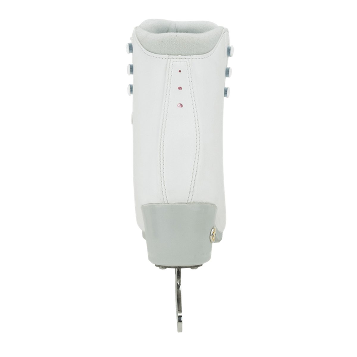 The Riedell Ruby skate features synthetic reinforcements and light support for enjoyment on the ice. This skate set also offers a modern ergonomic toe fit for out-of-the-box comfort. The plush hand-rolled collar provides relief to the Achilles tendon, and a flex notch design facilitates proper knee and ankle bend. Beyond the technical features, each skate is adorned with faux crystals in the backstay and a decorative gem lace bar for added sparkle on the ice.