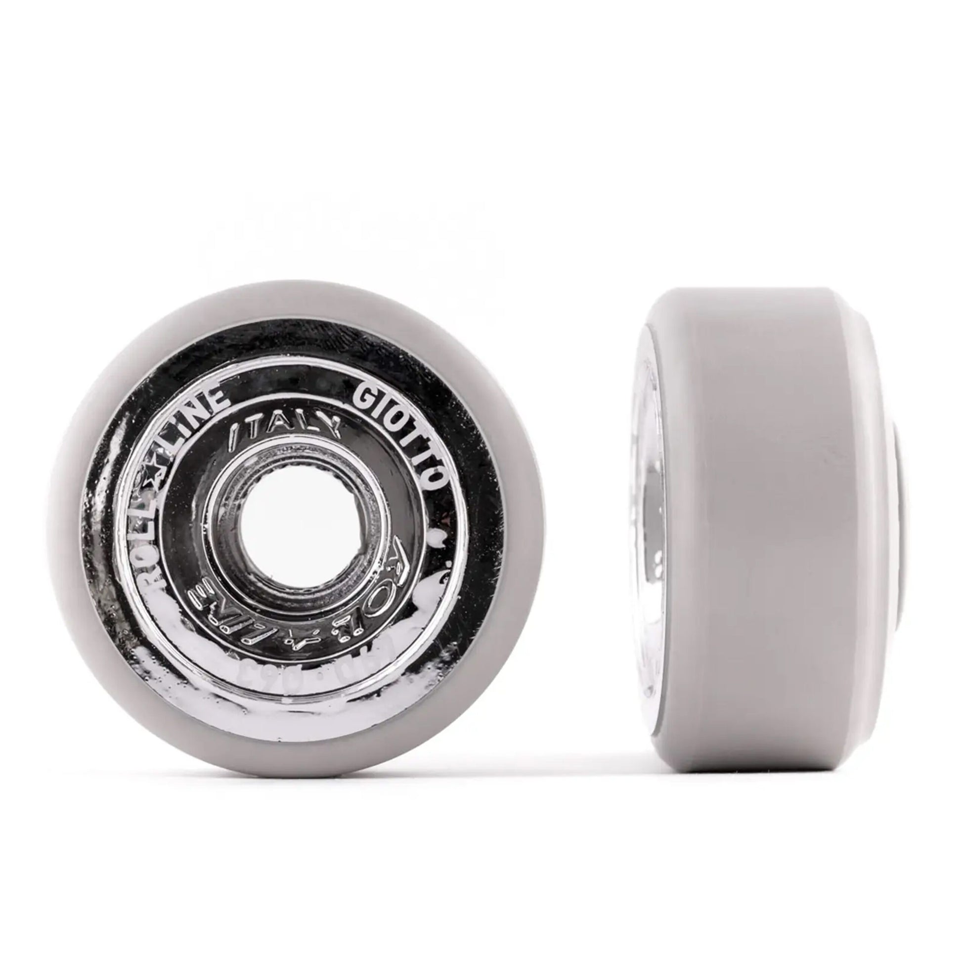 The Roll-Line Giotto Professional Figure Wheels are a Mono Compound Elastomeric Thermo Plastic wheel, which is produced utilizing an injection system and is Silver Chromed.