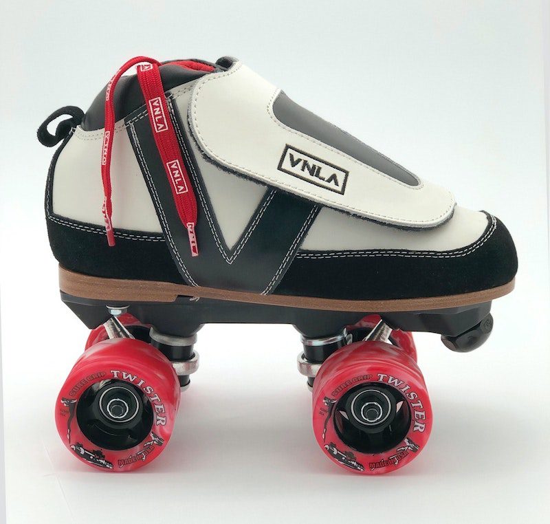 The Vanilla Evolution Rock Skate features Evolution top-grain Italian leather Boot, Vanilla Gorilla Nylon Plate, and Sure-Grip 62mm Twister wheels.